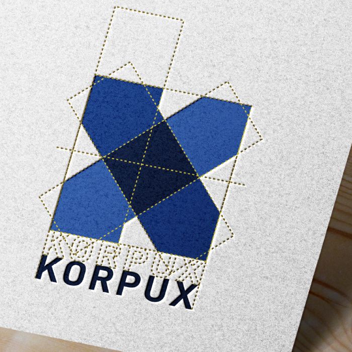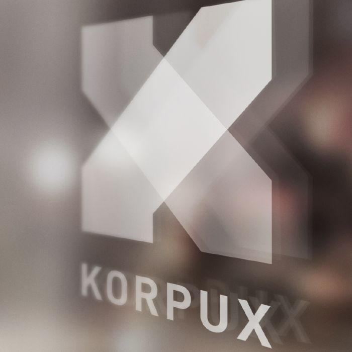 Más allá de su construcción formal, el logotipo de KORPUX funciona como una declaración visual de principios: