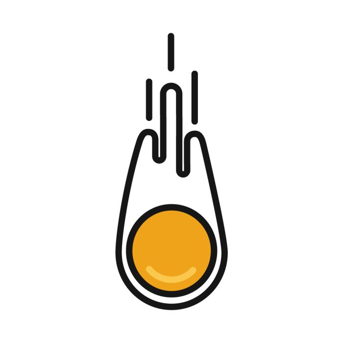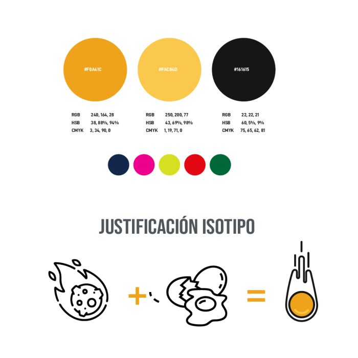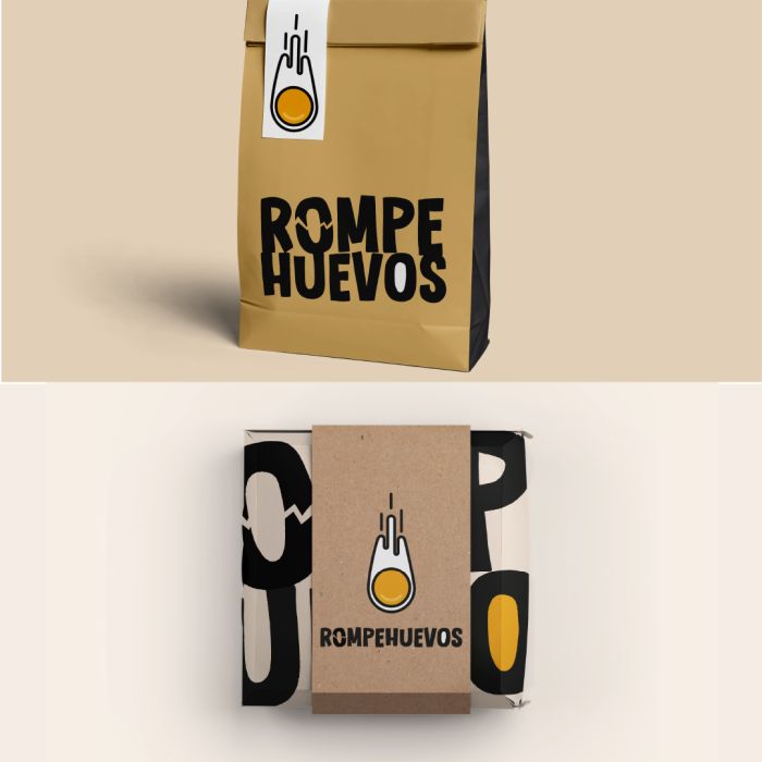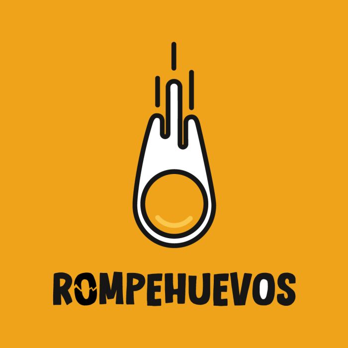 El logotipo de Rompehuevos juega con la potencia del impacto: un meteorito que rompe el cascarón, liberando todo lo que hay dentro. Es un símbolo de ideas frescas, de fuerza creativa y de ganas de romper con lo establecido. Los colores intensos transmiten esa energía vibrante que conecta con lo divertido, lo sabroso y lo inesperado.