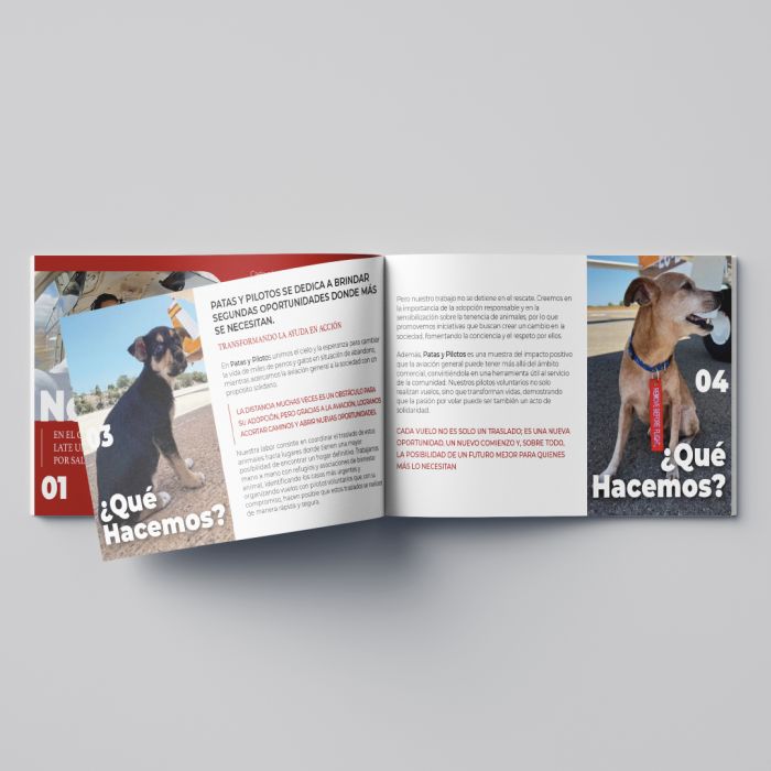 https://patasypilotos.com/ necesitaba una herramienta visual para explicar de forma clara, directa y emocional todo lo que hay detrás de su proyecto: una asociación que rescata perros, los cuida, los entrena y les encuentra familia… mientras vuelan, literalmente. ¿Cómo condensar tanta humanidad, innovación y energía en un único documento?
